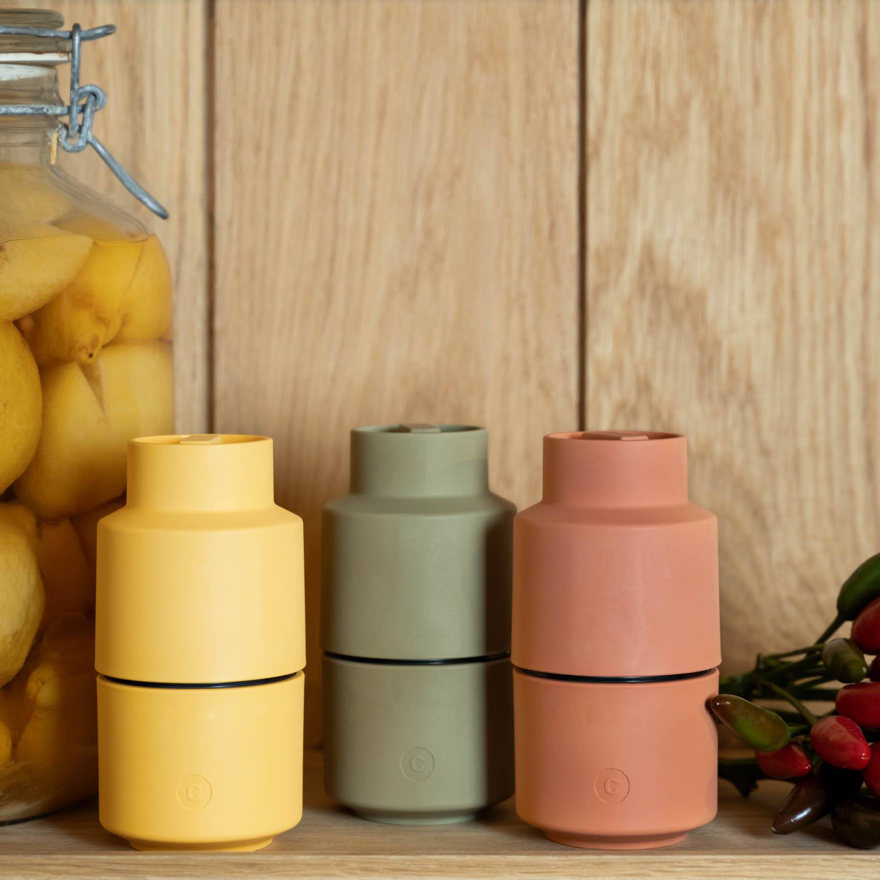 Bring frischen Schwung und kreatives Design in deine Küche mit Billund von CrushGrind. Diese moderne Salz- und Pfeffermühle verbindet spielerische Ästhetik mit durchdachter Funktion – inspiriert von den ikonischen Bausteinen aus Dänemark und gemacht für stilbewusste Küchen.