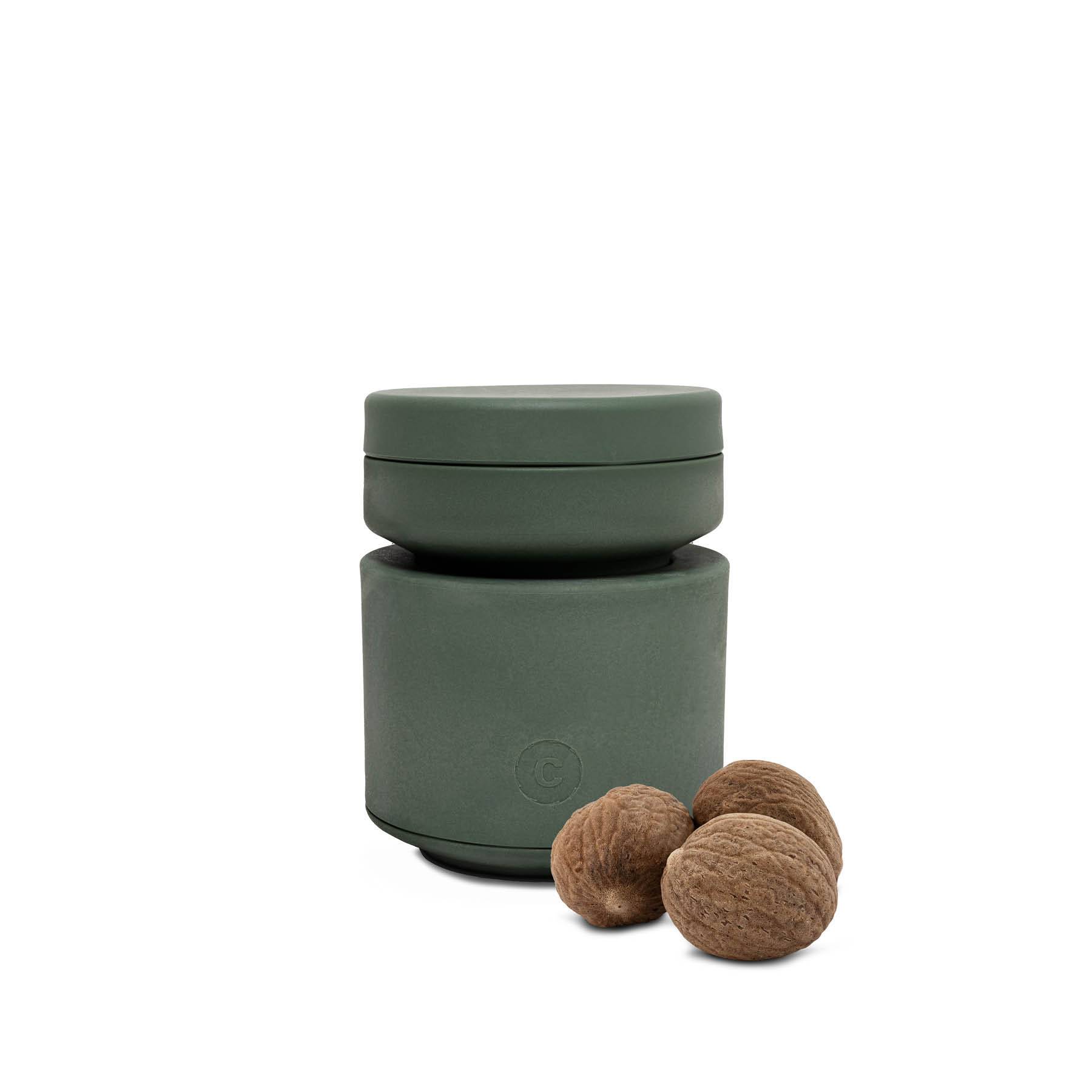 - Oberteil anheben und eine ganze Muskatnuss einlegen