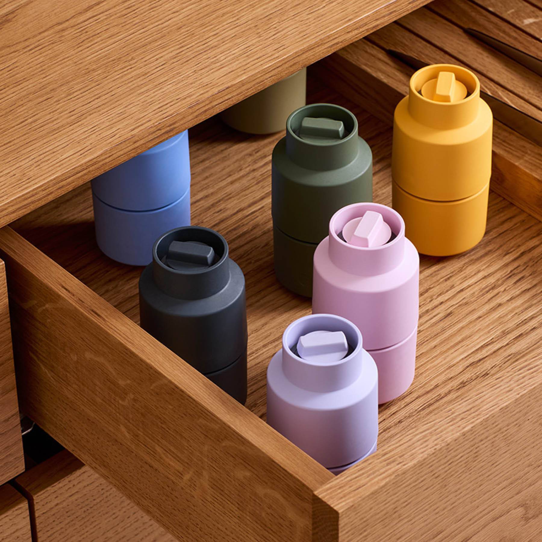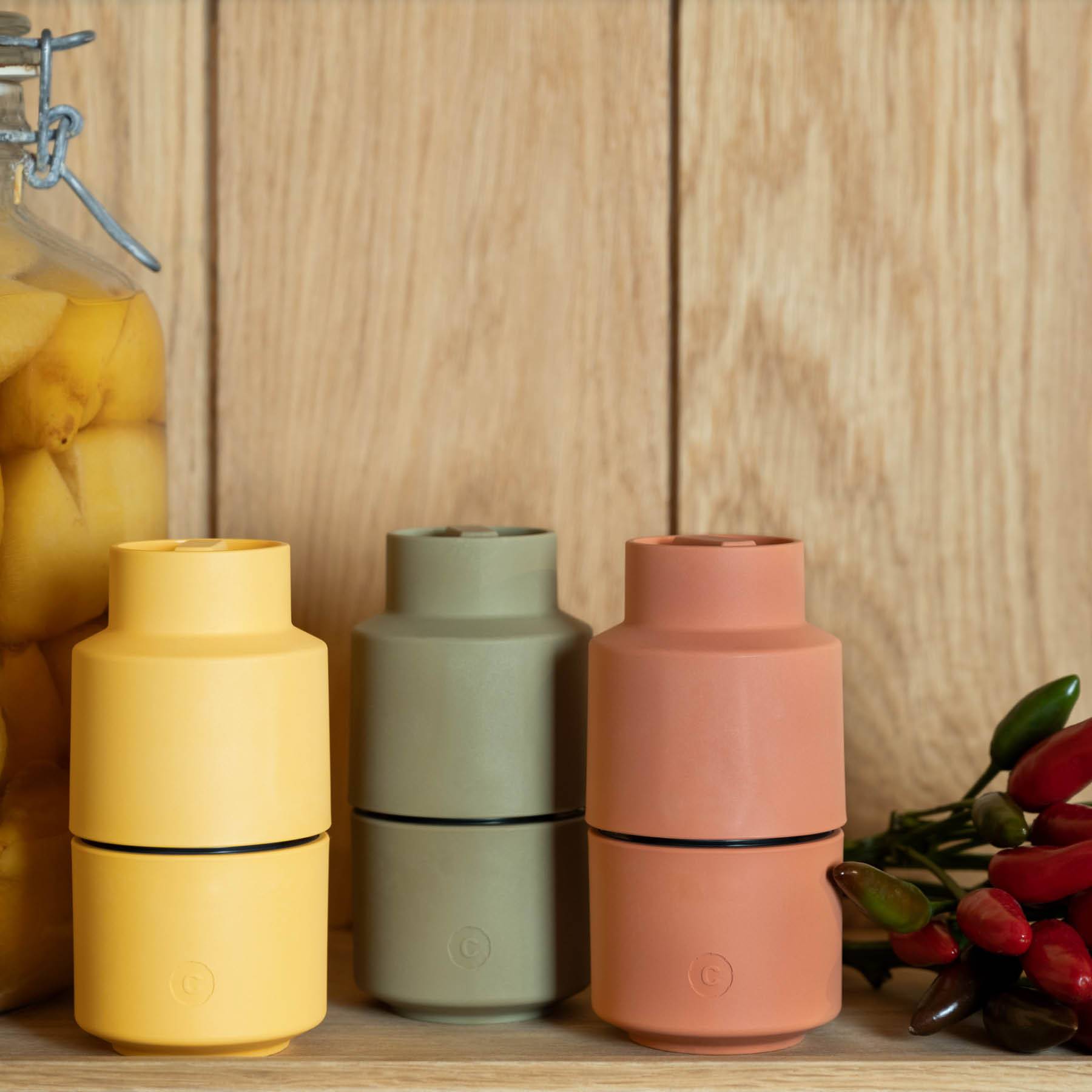 Bring frischen Schwung und kreatives Design in deine Küche mit Billund von CrushGrind. Diese moderne Salz- und Pfeffermühle verbindet spielerische Ästhetik mit durchdachter Funktion – inspiriert von den ikonischen Bausteinen aus Dänemark und gemacht für stilbewusste Küchen.