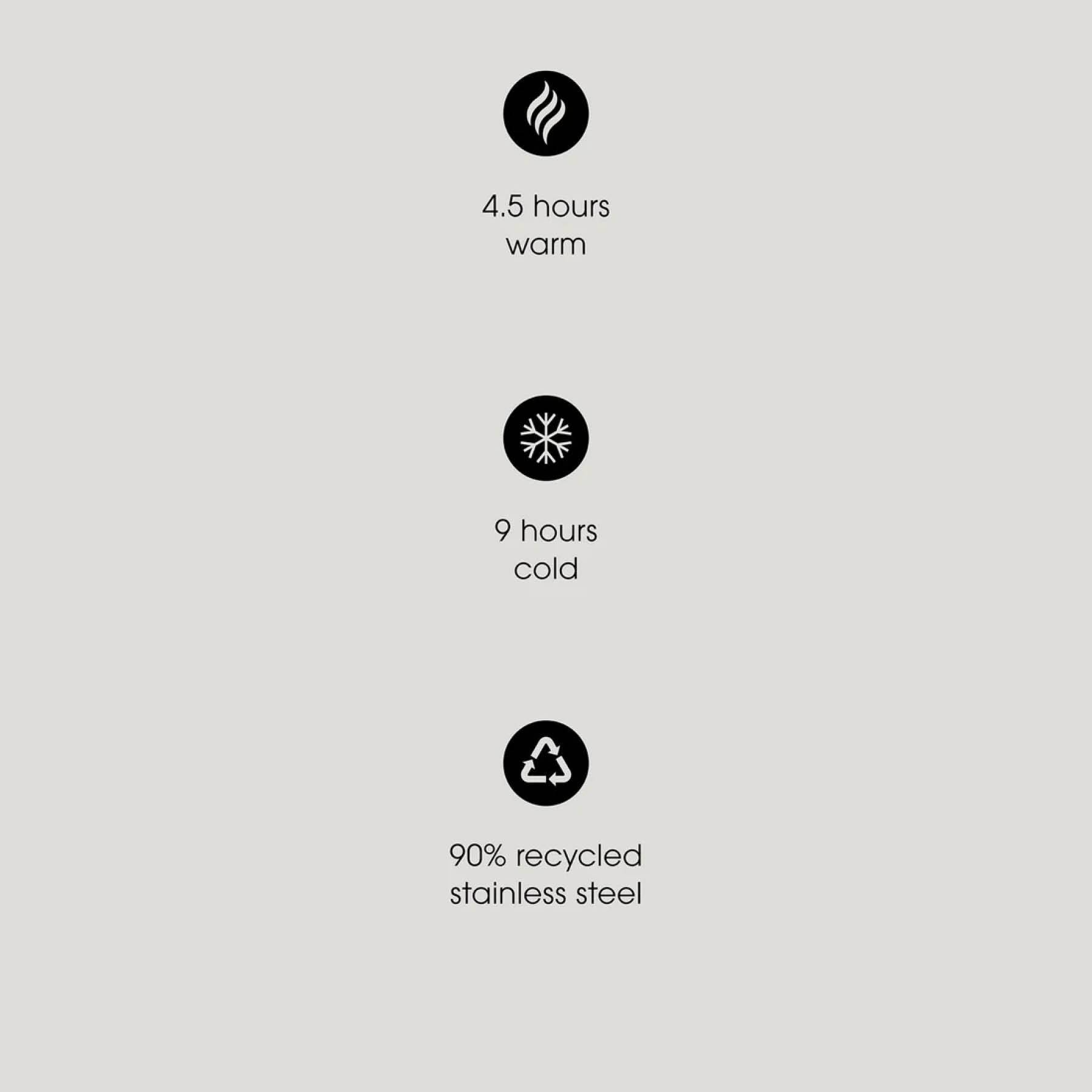 Hält Getränke 4,5 Stunden heiß und 9 Stunden kalt