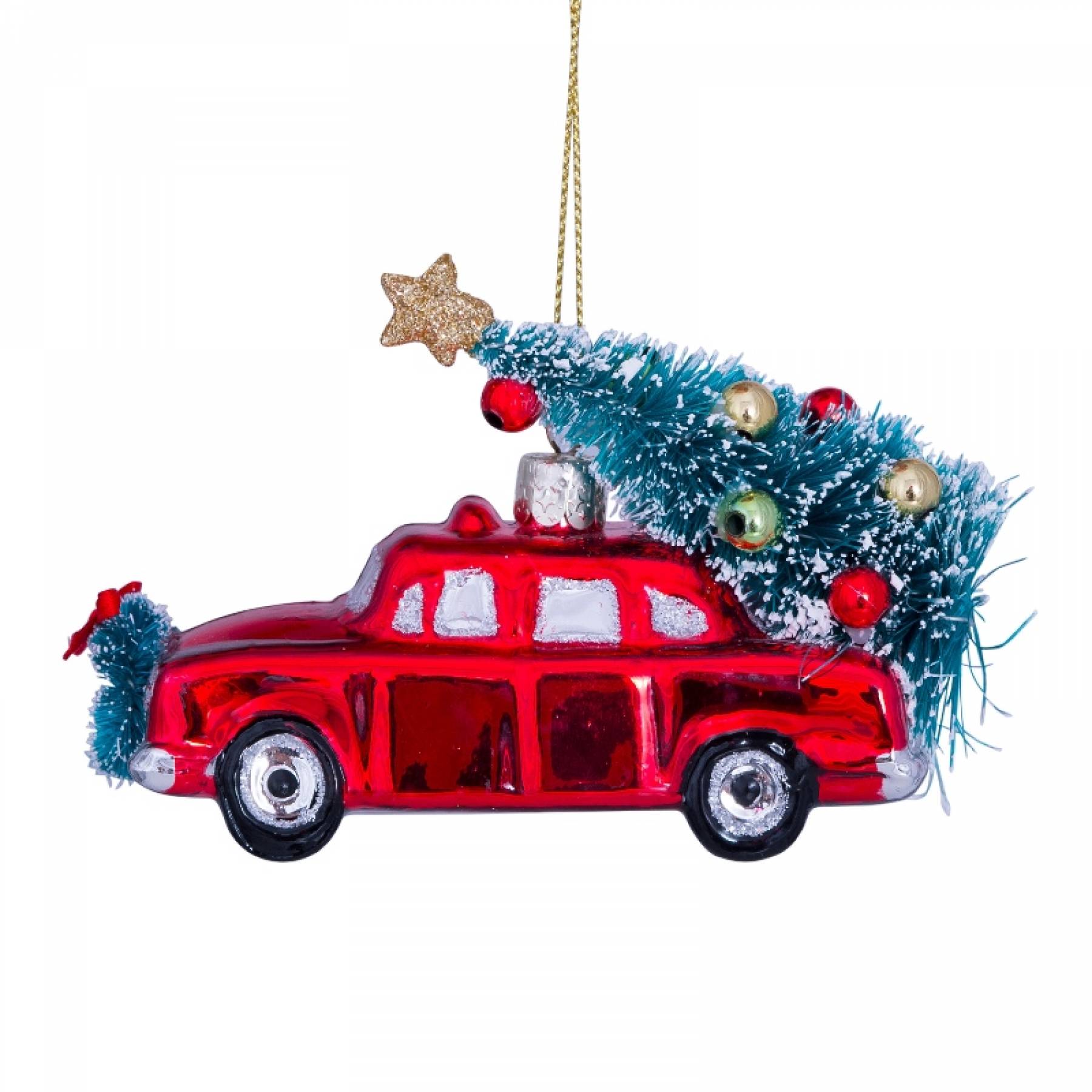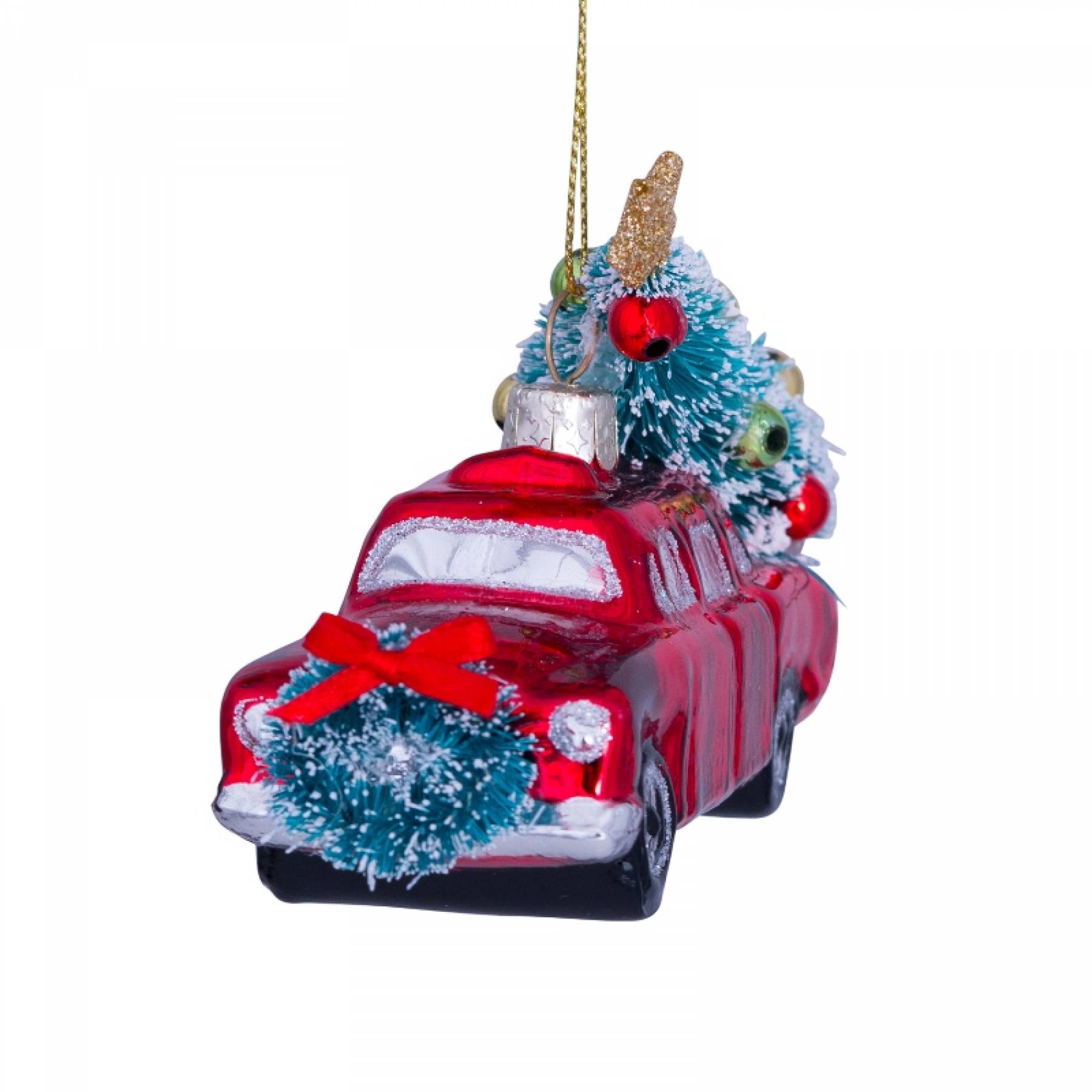 Anhänger Glasornament Auto mit Weihnachtsbaum