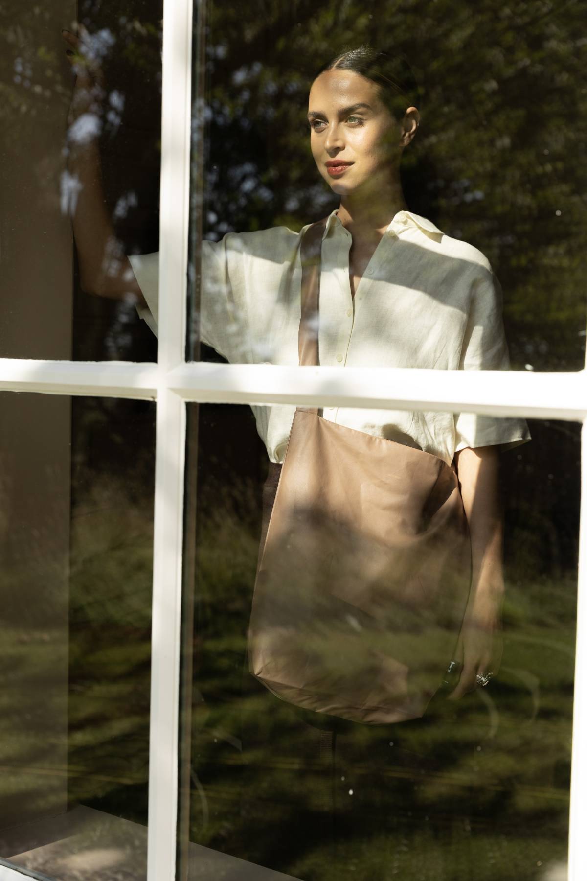 Die Tasche wird aus einer geschmeidigen Kunstfaser hergestellt, die sich wie weiches Leder anfühlt. Verpackt ist sie in einer kleinen Tasche mit kontrastigem Reißverschluss. Ideal als zusätzliche bag-in-bag.