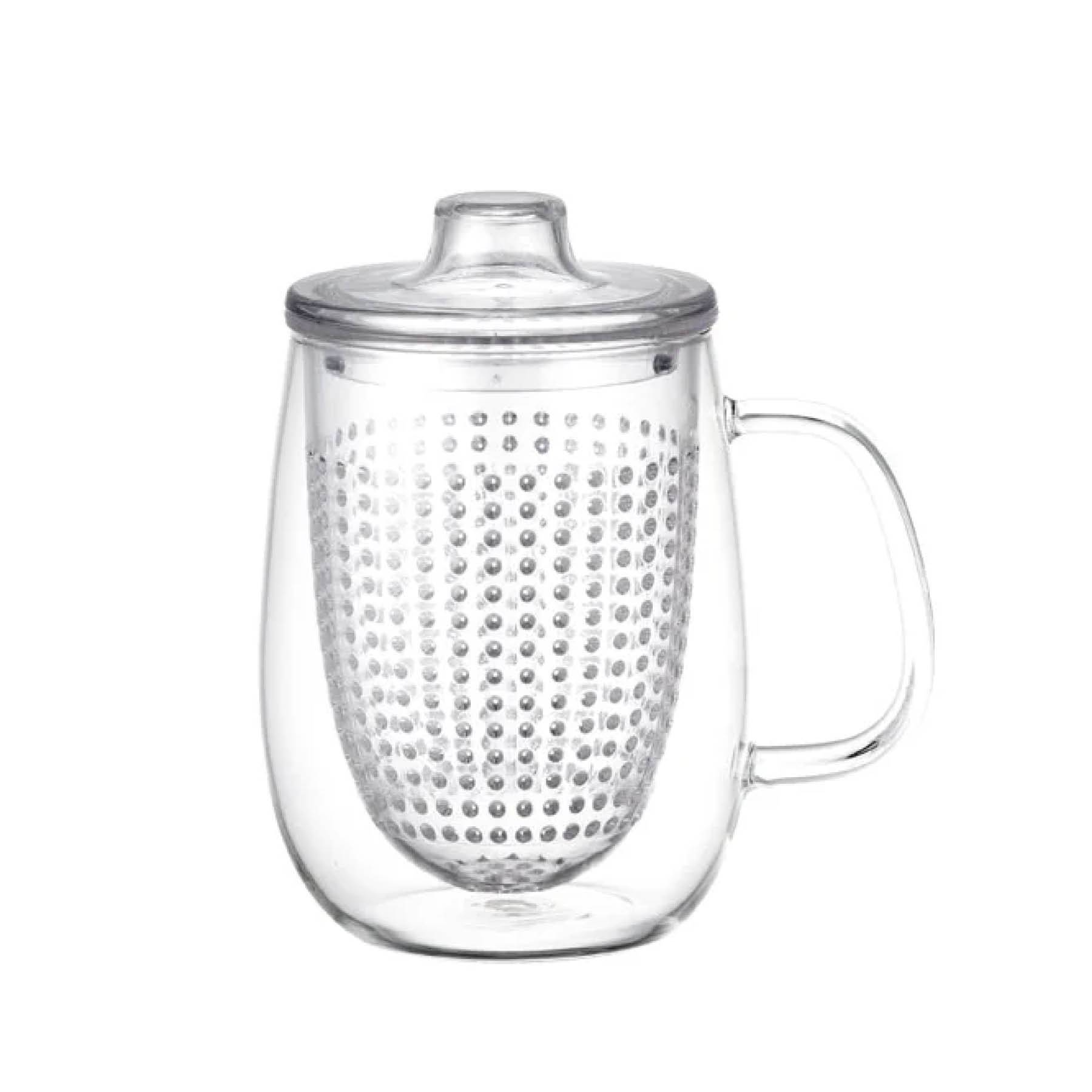 Der Becher ist aus hitzebeständigem Glas gefertigt. Der Deckel und das Sieb sind aus hochwertigem, transparentem Copolyester gefertigt, wodurch sie langlebig und für den täglichen Gebrauch geeignet sind.