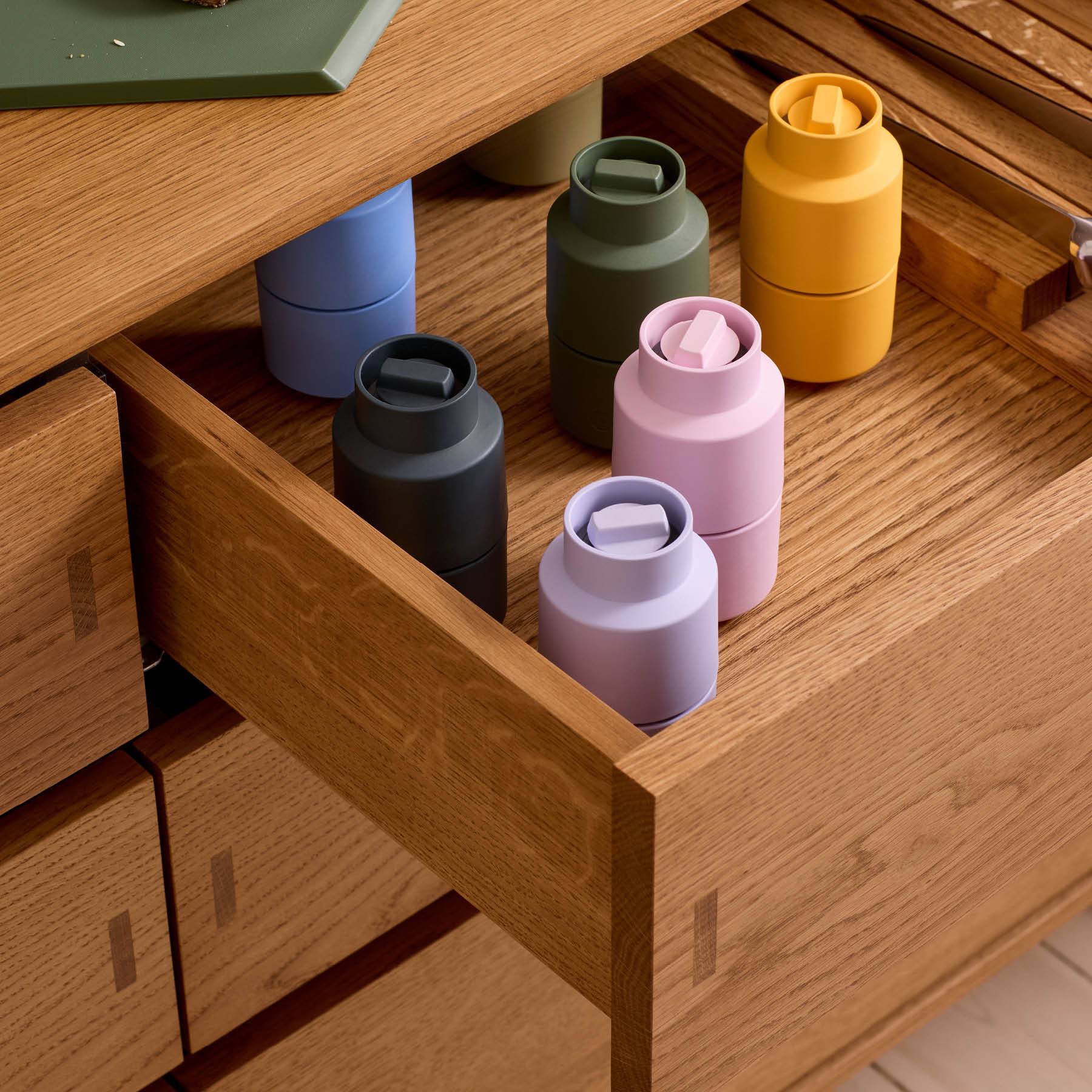 Bring frischen Schwung und kreatives Design in deine Küche mit Billund von CrushGrind. Diese moderne Salz- und Pfeffermühle verbindet spielerische Ästhetik mit durchdachter Funktion – inspiriert von den ikonischen Bausteinen aus Dänemark und gemacht für stilbewusste Küchen.